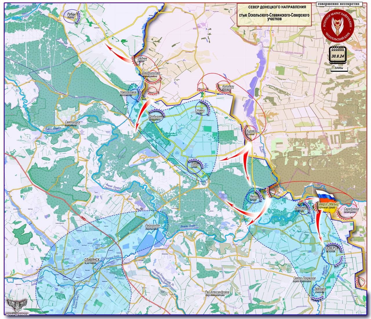 Сложный театр боевых действий: много естественных преград - реки, леса, очень развитая транспортная сеть. Поэтому, следуя своей тактике «тысячи порезов», ВС РФ будут разбирать эти узлы и районы обороны ВСУ по разделениям, красиво рассекая и охватывая зажатые на местности группировки противника и отлавливая его на маневре по дорогам.
