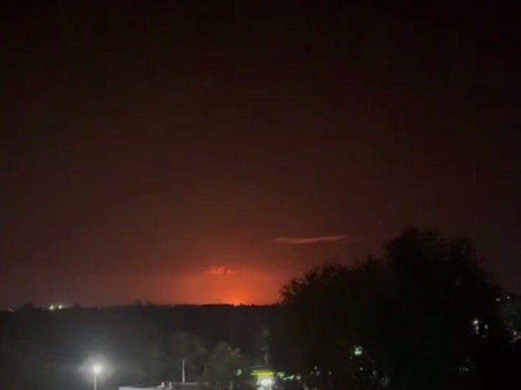На фото — зарево от пожара, снятое из Днепропетровска.