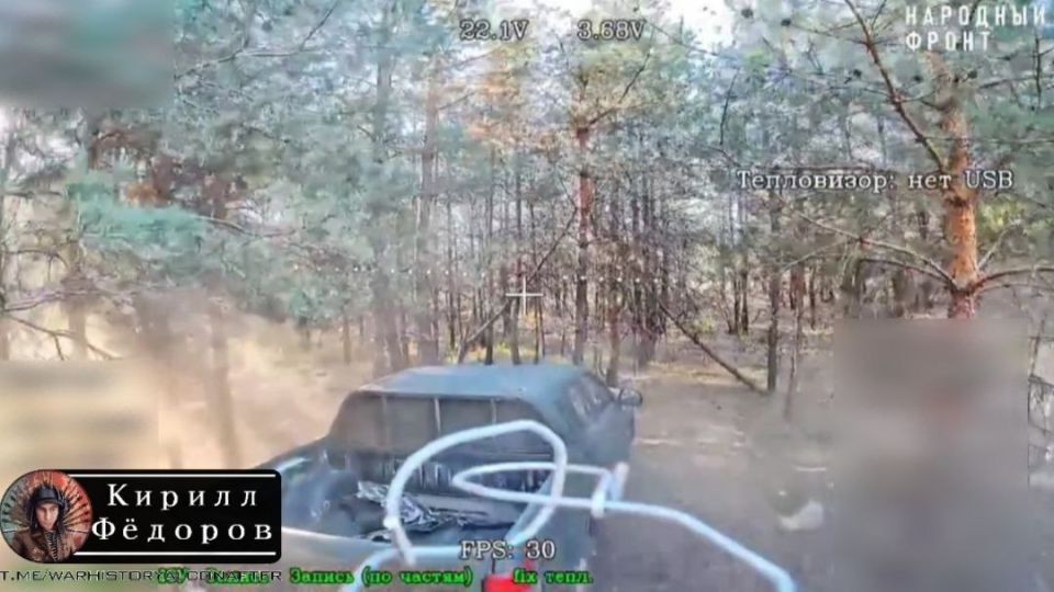 Операторы БПЛА 164-ой бригады уничтожают оптоволоконными дронами украинский автотранспорт в лесах на Ямпольском направлении.