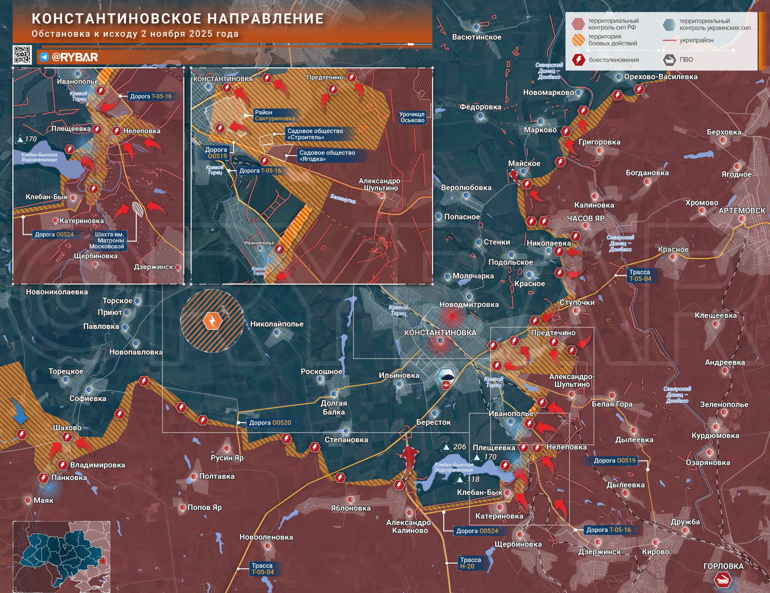 Онлайн-карты доступны по подписке на map.rybar.ru