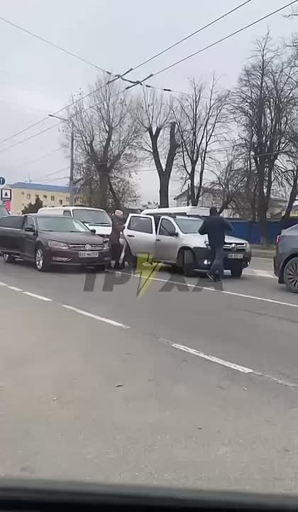 Местные СМИ утверждают, что в ней ТЦК. Люди пытались прогнать ТЦК и вытащить мужчину которого забрали, после чего белая машина несколько раз сбила человека.