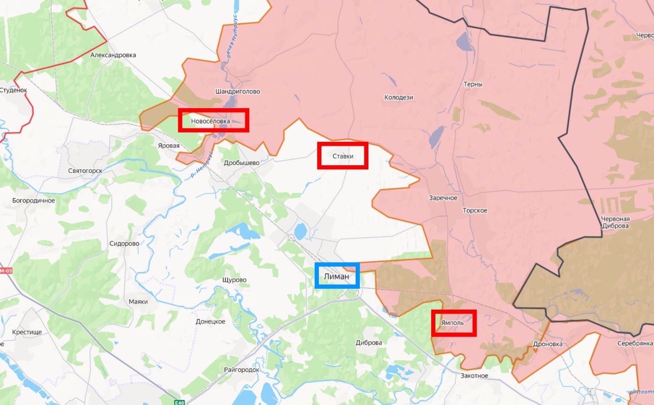 Видео сразу из трех населенных пунктов с Лиманского направления, занятых ВС РФ - Новоселовки, Ставок и Ямполя.