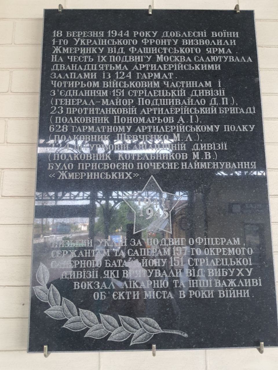 В Винницкой области власти подвергли демонтажу мемориальную доску на вокзале, установленную в честь освобождения города от немецких захватчиков, которое произошло 18 марта 1944 года. Теперь, по мнению местных чиновников, это событие не считается значимым для города.