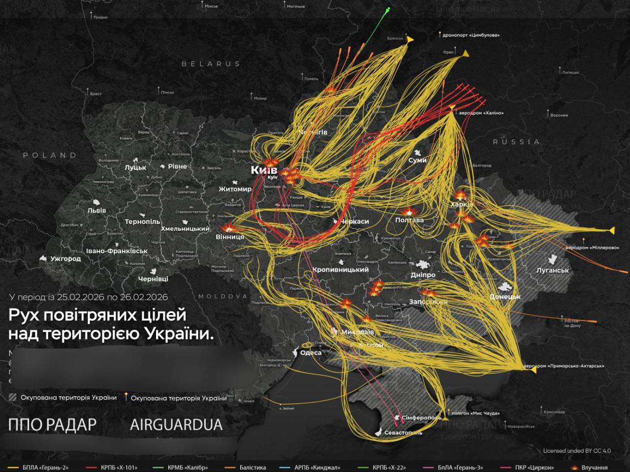 По данным СМИ, основные удары наносились в направлении Харькова и области, Николаевской области, Винницы и пригородов, Запорожья, Киева и области, Кривого Рога и Полтавы.